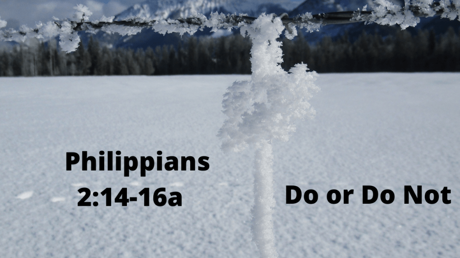 Philippians 2:14-16a is on today’s list of “Do and Do Not” with regard to finding out how God expects us to conduct ourselves during this life on earth.